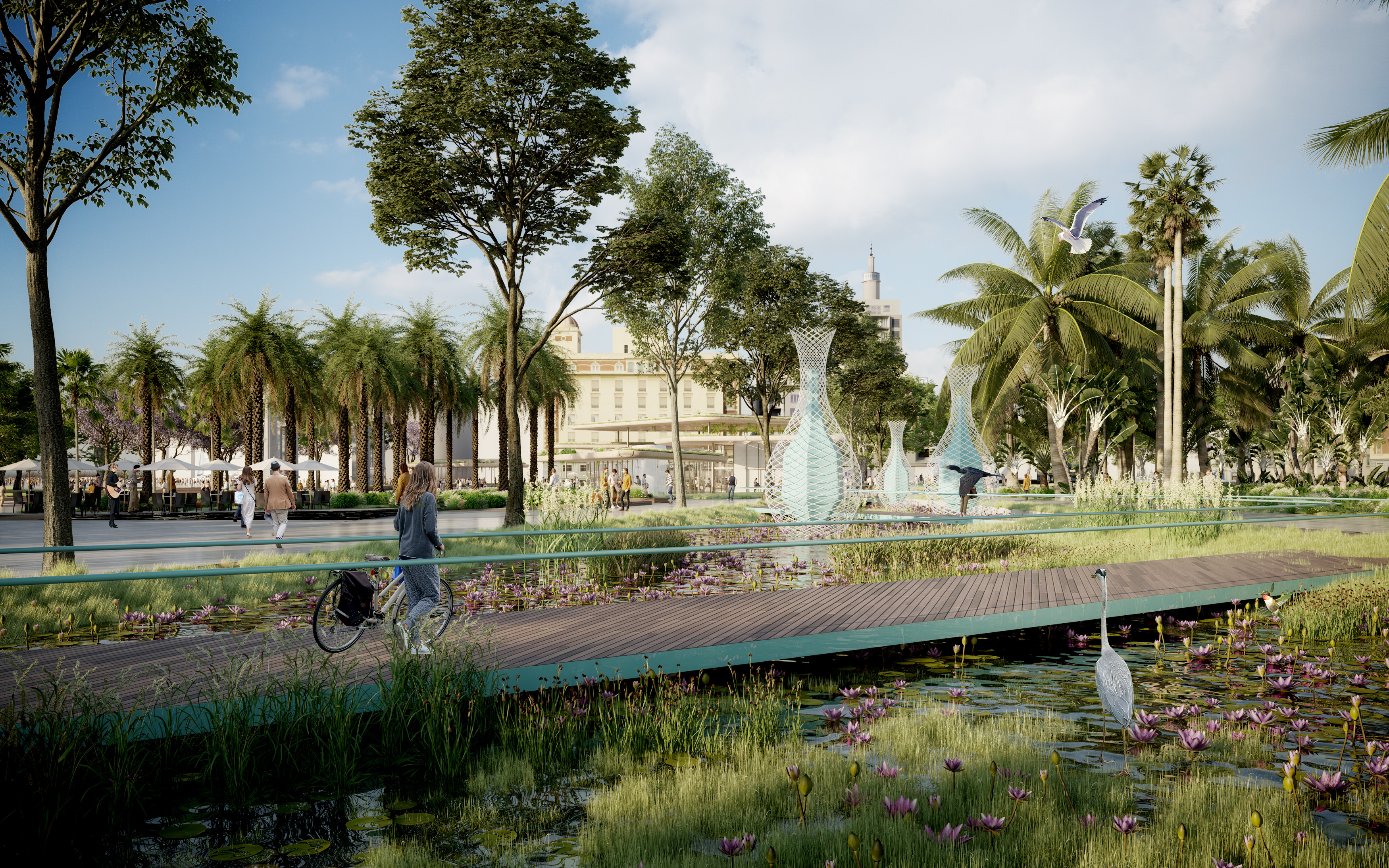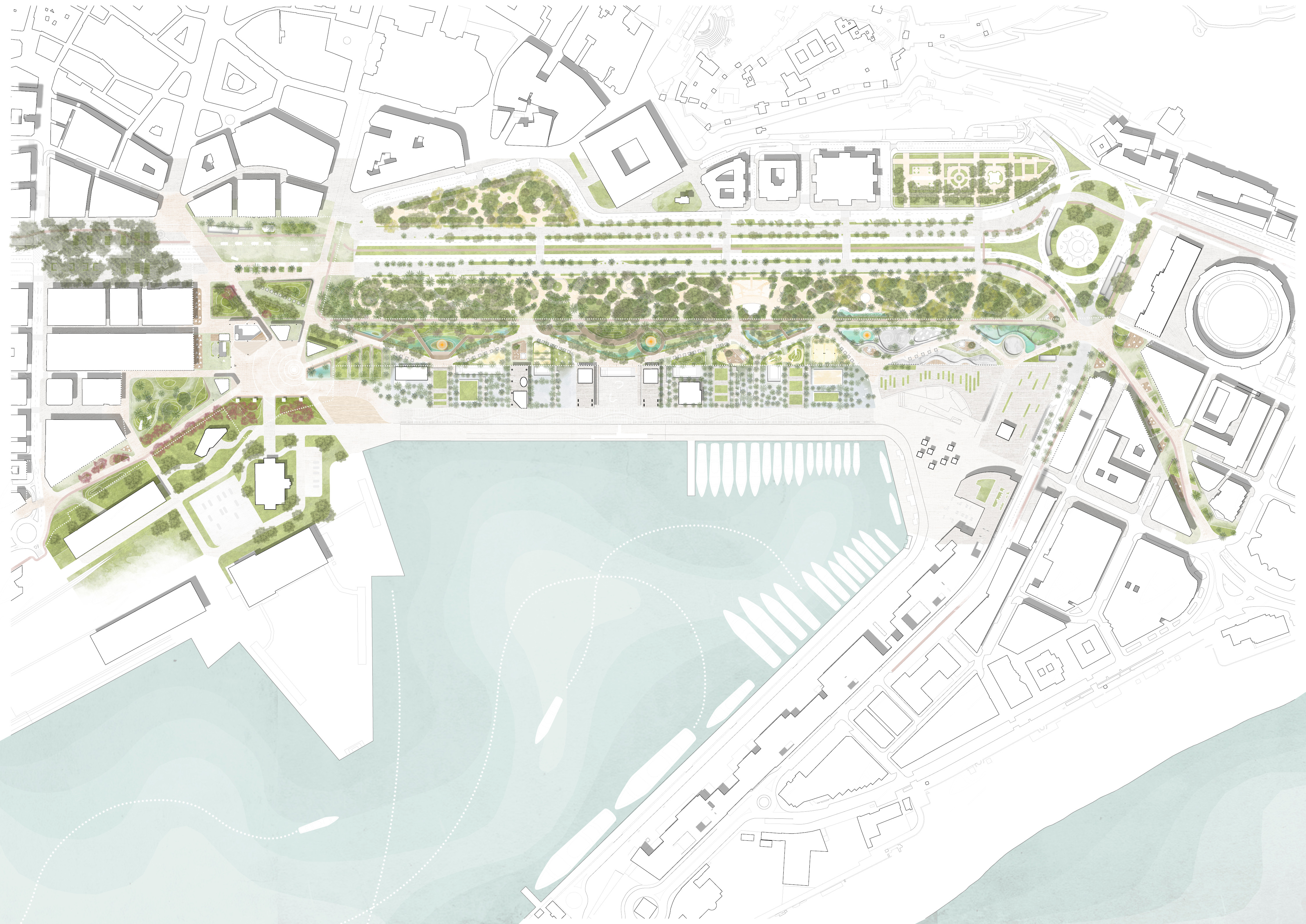 La propuesta incorpora 70.000 m2 de zonas peatonales y potencia sinergias entre la ciudad y el Puerto, a través de una iniciativa innovadora, sostenible, ecológica y llena de actividad.