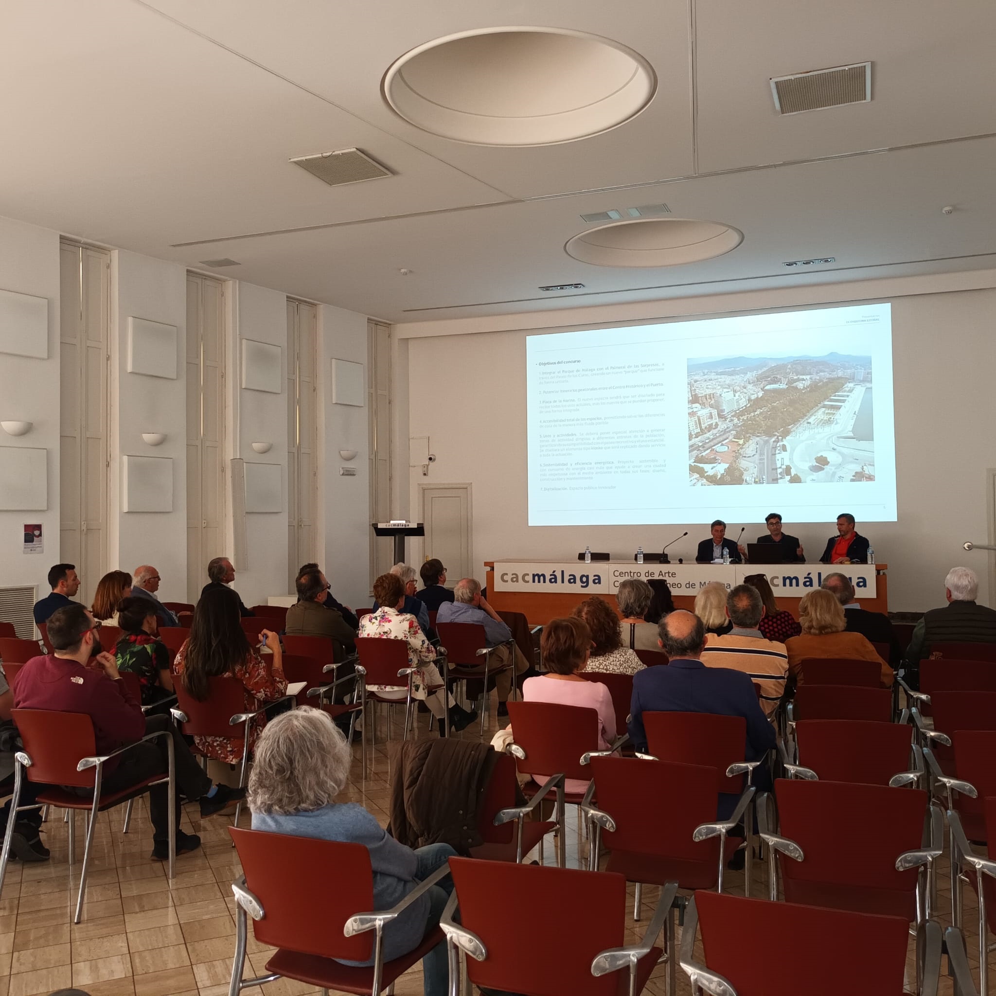 Miembros del equipo ganador del concurso, formado por la empresas B720 (Fermín Vázquez), Luis Machuca Arquitectos y DJ Arquitectura, han explicado los detalles de la propuesta con la que el centro de la ciudad suma 71.000 m2 de espacio peatonal y zonas verdes, gracias al soterramiento del tráfico desde el Guadalmedina hasta el hotel Miramar.